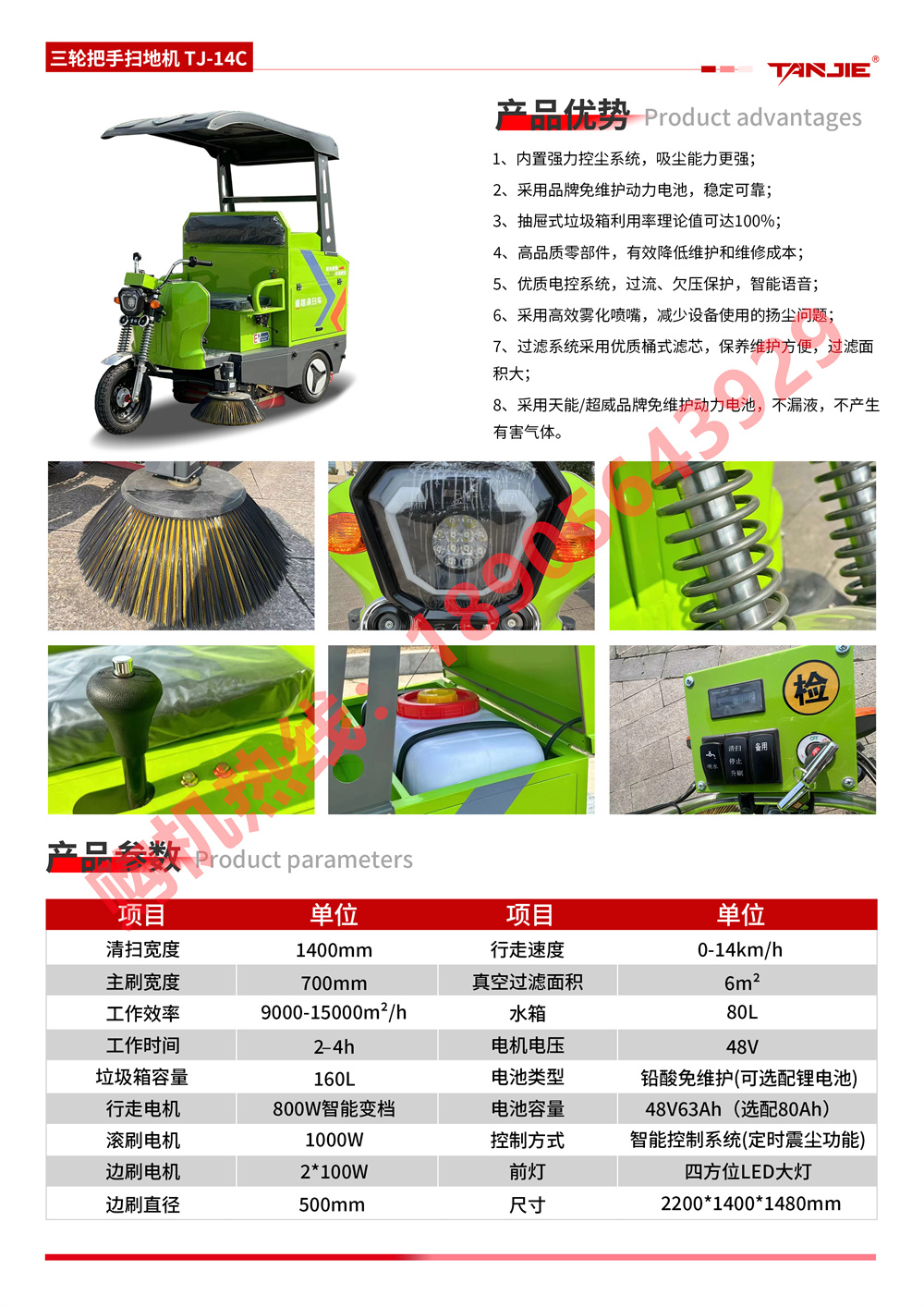 沙坪坝坦洁三轮把式扫地机TJ-14C