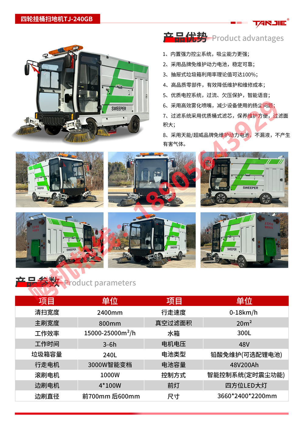 沙坪坝坦洁四轮挂桶扫地车TJ-240GT
