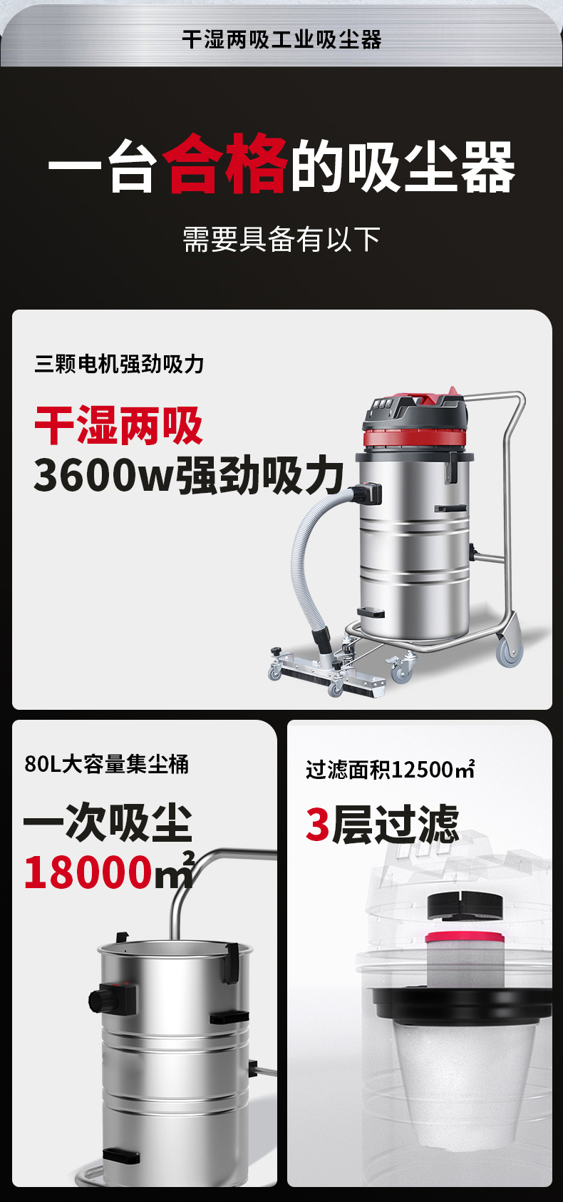 沙坪坝坦洁380V双桶不锈钢工业吸尘器X7系列
