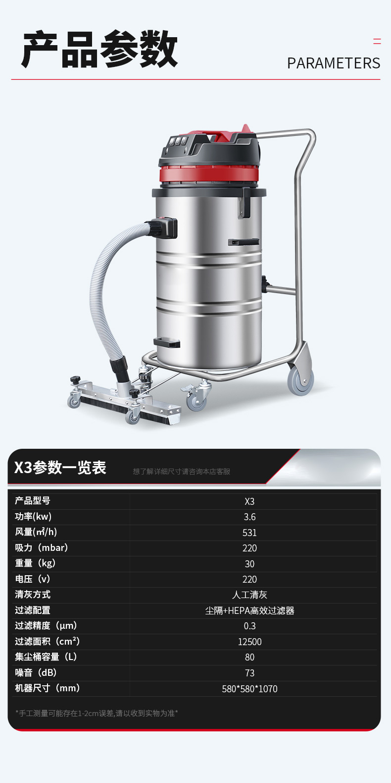 沙坪坝坦洁220V单桶不锈钢工业吸尘器X3系列