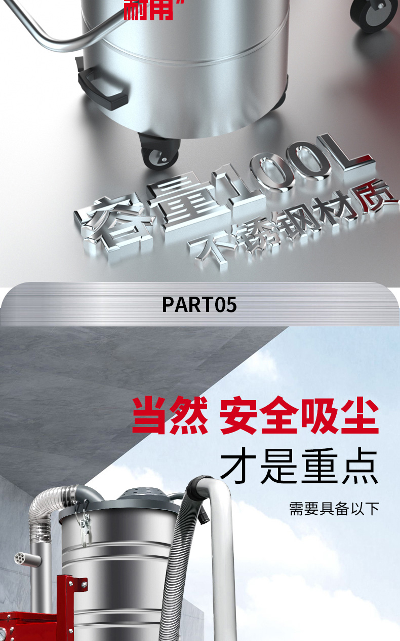 沙坪坝坦洁380V双桶不锈钢工业吸尘器X7系列